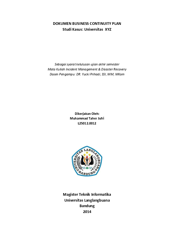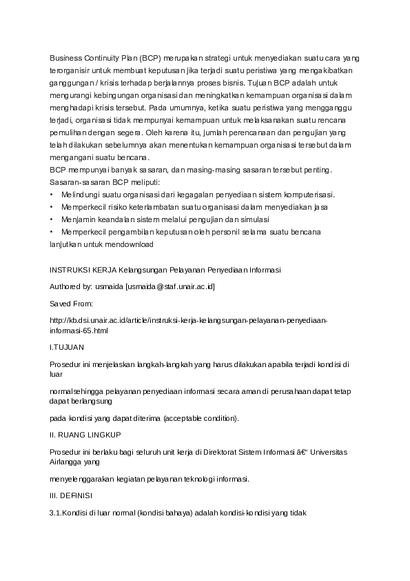 Business Continuity Plan Adalah Pdf