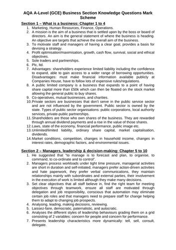 Business studies a level model answers aqa. In examination the way marks would be awarded to answers like these may be different. Analysis means showing how a key point impacts on a business. Your answer should include.