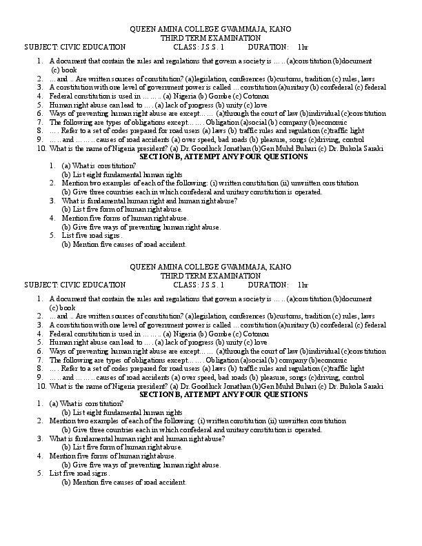Civic education jss 1 third term. Christian religious studies jss1 third term. How to download jss 1 past exam questions paper.