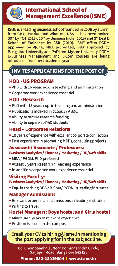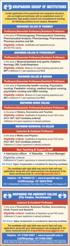 Jyoti nivas pre university college bangalore karnataka advertised in deccan chronicle epaper for the faculty recruitment 2019 lecturer jobs non teaching jobs for more details read below.